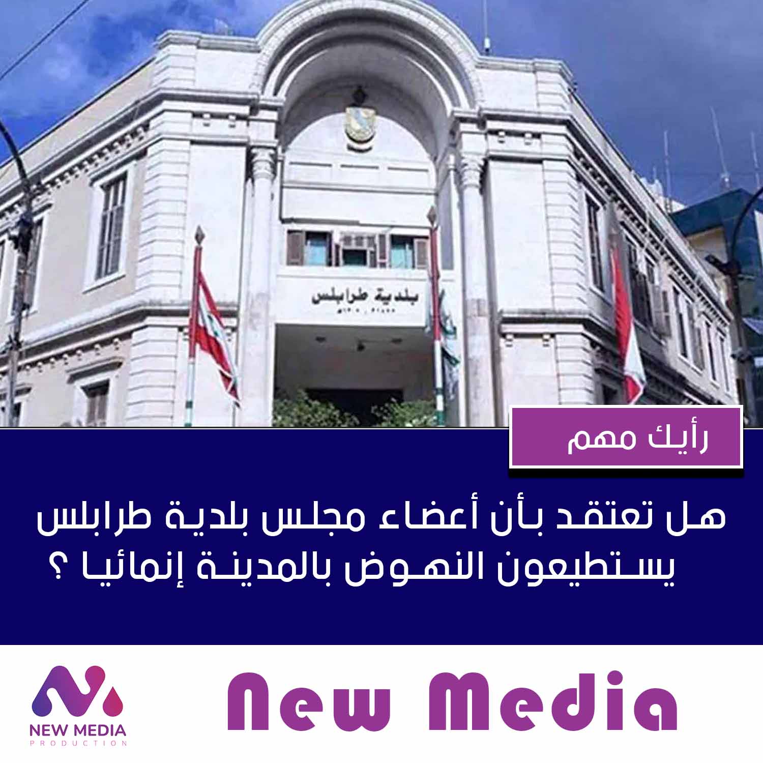 هل تعتقد ان اعضاء مجلس بلدية طرابلس يستطيعون تحريك العجلة الانمائية في المدينة ؟نعملا شارك هذا الموضوع: انقر للمشاركة على فيسبوك (فتح في نافذة جديدة) فيس بوك النقر للمشاركة على X (فتح في نافذة جديدة) X 247 شارك